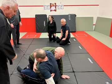 Martial arts class where you learn to set boundaries, verbal de-escalation supported by the ability to defend against bad intentions by effectively using jiu jitsu to stay safe and keep the other person safe. The intention is to learn how to fight so that your confidence in an encounter means that you don't have to fight.